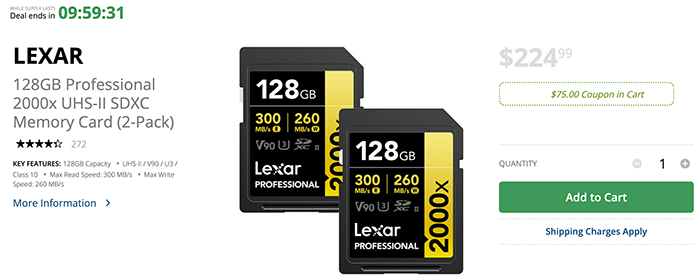 Save $75 on the Lexar fast SD dual pack at BHphoto.