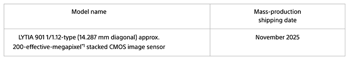 *2 Among CMOS image sensors for mobile applications. According to Sony research (as of November 27, 2025).