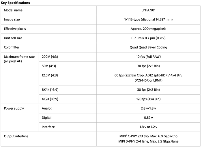 Sony Semiconductor Solutions Corporation (Sony) today announced the upcoming release of the 1/1.12-type large-format LYTIA 901 mobile image sensor with a high resolution of approximately 200-effective megapixels.*1 This product uses a pixel array format that delivers both high resolution and high sensitivity, further incorporates an image processing circuit utilizing AI technology within the sensor. It achieves high-definition image quality even with high-powered zooming of up to 4x on monocular cameras and offers new experiential value when shooting on mobile cameras.