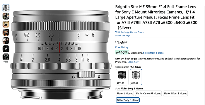 On December 29 Brigthin Star will announce this new 35mm F1.4 Full-Frame Lens. This full-frame lens features an all-metal body, a retro design, and will be available in black and silver. It boasts a stepped/stepless aperture and a lightweight design. There is no info yet about which lens will be supported but usually they do launch those manual focusing lenses for all kind of different mounts (see their Amazon store here).