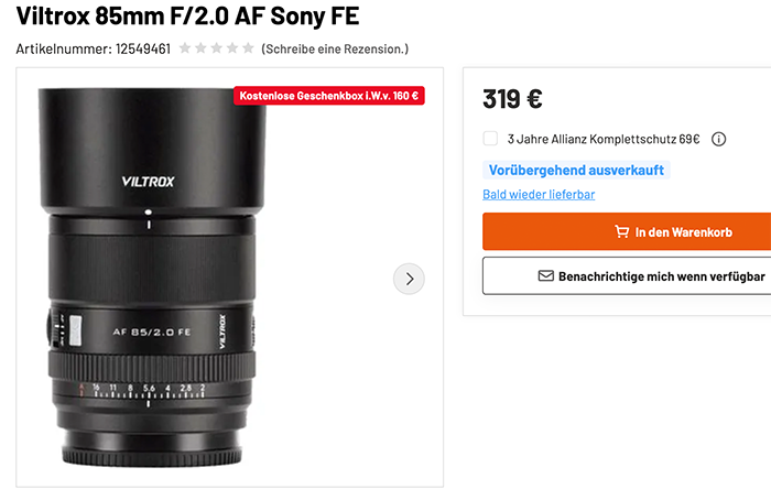 On October 20 Viltrox will launch the new 85mm F/2.0 AF Sony FE. But the lens is already available for preorder in some German stores and here are the leaked images: