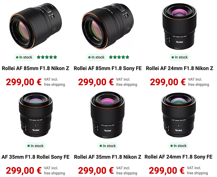 The new Rollei 24mm and 35mm f/1.8 FE lenses are now available for preorder in Europe