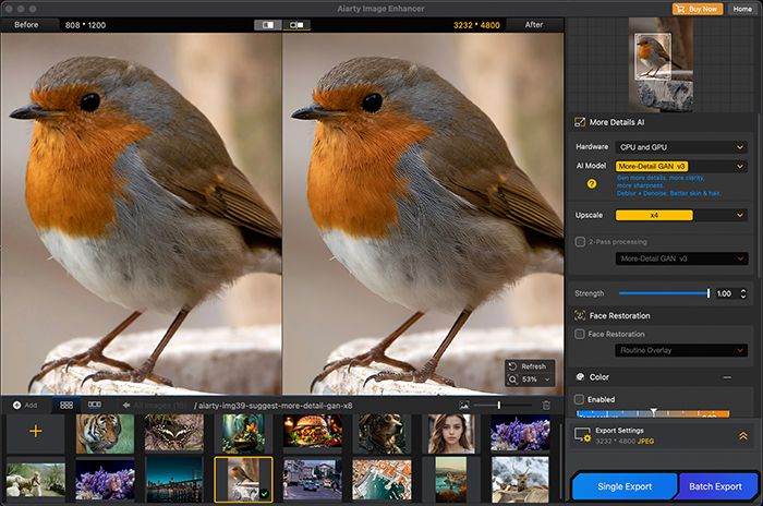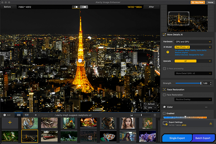One of the best things about Aiarty is its ability to work offline, which means you can process your images without relying on an internet connection. Whether you’re working on a few images or a large batch, Aiarty’s batch processing allows you to work efficiently and consistently.