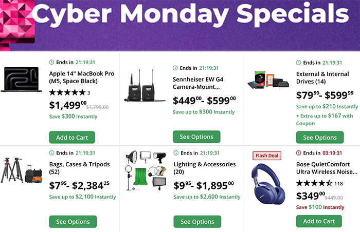 Cyber MOnday deals are now live worldwide at Amazon US, BHphoto Holiday page , Amazon Canada.