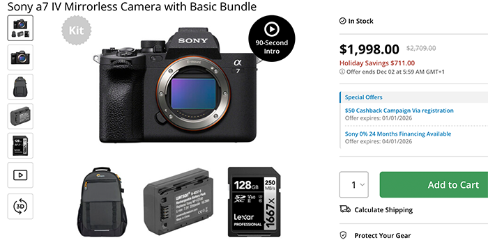 The massive Sony holiday savings started today and you can find them on those pages at BHphoto, Amazon, Adorama. And the additional $50 cashback has been extended to January 1st!