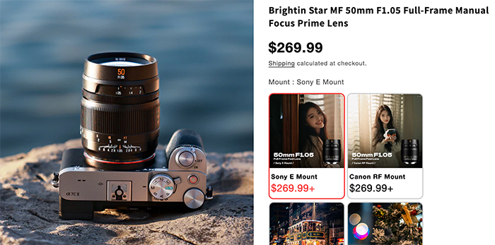 - Brightin Star 50mm f/1.05 manual focus FE lens (announcement on Jan 16)