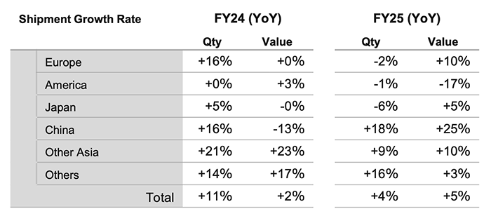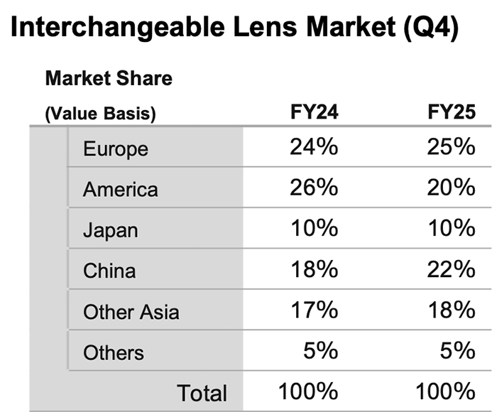 Despite a continued decline in sales in China due to reduced government subsidies and weakness in the overall market during the shopping season for Singles’ Day, demand in the global interchangeable lens camera market during the quarter remained strong year-on-year, mainly in Asia.