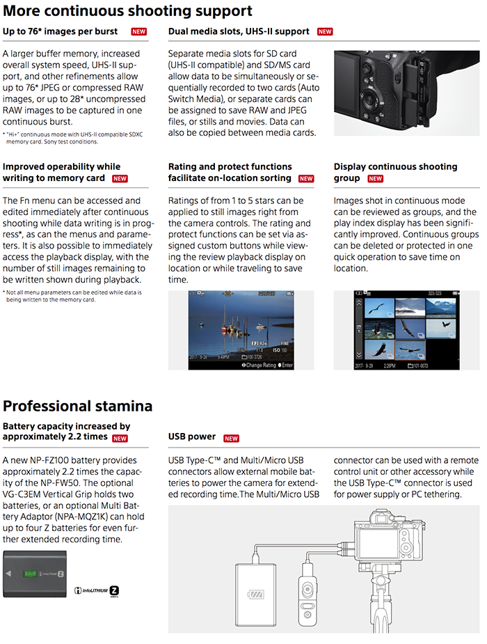 This is the detailed list of all specs and new features of the Sony A7rIII (via Sony Brochure):