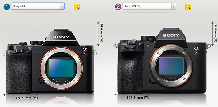 Six years ago Sony introduced the first A7r camera. Here you can see how much change there is between the new A7rIV and the very first A7r. The most visible change is the depth of the grip: