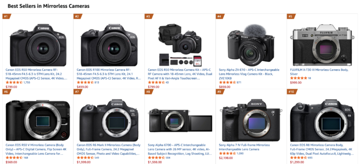 After all the holiday deals this is where we stand now in early 2026: The A7V sells hot at BH while on Amazon you will find Canon R50 leads the pack: