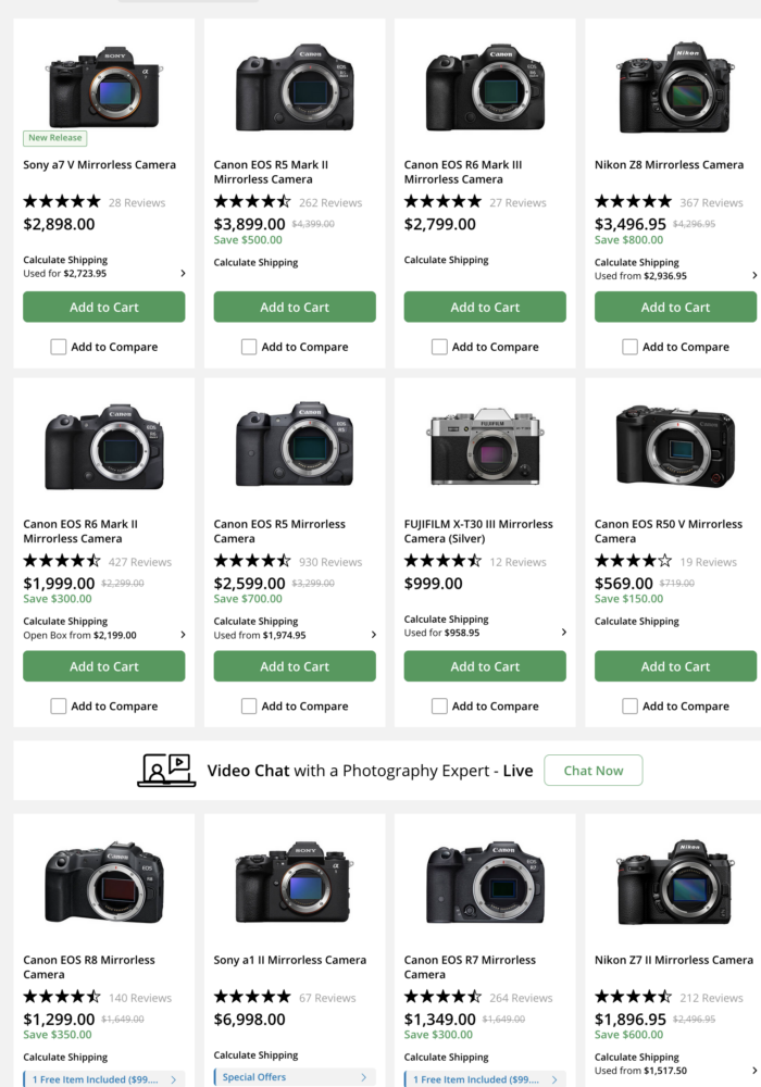 Current bestsellers at Amazon and BH: Sony A7V still selling hot!