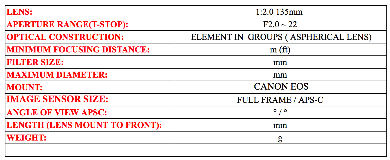 First leaked images of the new Samyang 135mm f/2.0 lens!