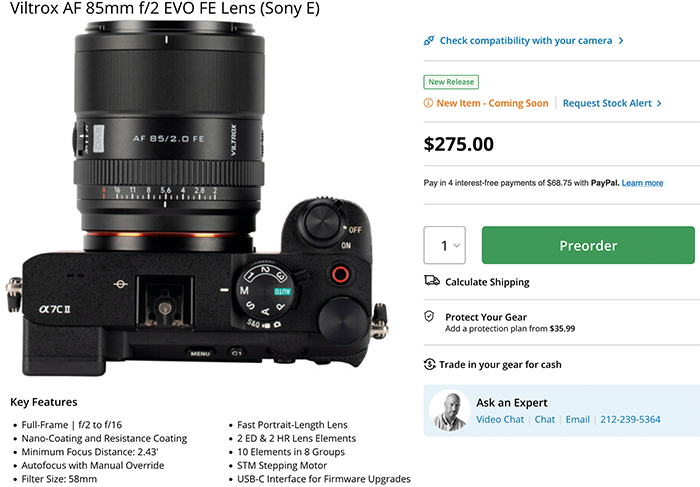 You can preorder it at BHphoto, Amazon, Viltrox worldwide store.