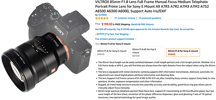 $100 off on the Zeiss 85mm lens at Amazon (Click here), Adorama (Click here) and BHphoto (Click here).