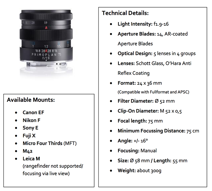 At the request of many of its backers from around the world, German lens manufacturer Meyer-Optik-Goerlitz announced today that it is adding the Primoplan 75/f1.9 to its already successful Kickstarter campaign to resurrect the Primoplan 58/f1.9.