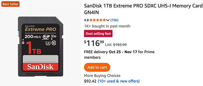 - $65 off and lowest price ever on the Sandisk 1Tb SD card