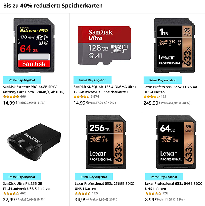 Bis zu 40% reduziert: Speicherkarten at Amazon DE.