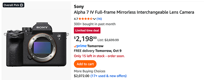 - $500 off on the Sony A7IV at BHphoto, Amazon,