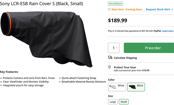 We finally got the BIG announcement we were all waiting for! The new Sony A7V—ah wait… nope. It’s the Sony Camera Rain Cover, now finally available for preorder at BHphoto (click here).