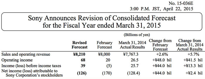 It really looks like the big Sony financial crisis will be over soon. Playstation sales and Imaging Sensor Business made Sony post its best quarterly profit in seven years and increase its projection for annual sales. Sony now expects a full-year operating profit of 20 billion yen, compared with an earlier forecast for a 40 billion-yen loss.