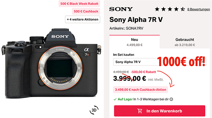Sony Europe launched new up to 500 Euro discount on Sony gear at CalumetPhoto, Fotokoch, Fotoerhardt, Amazon DE, WexUK (runs til Dec 1). The cool thing is that you can combine this with the Winter Cashback and save up to 1000 Euro!