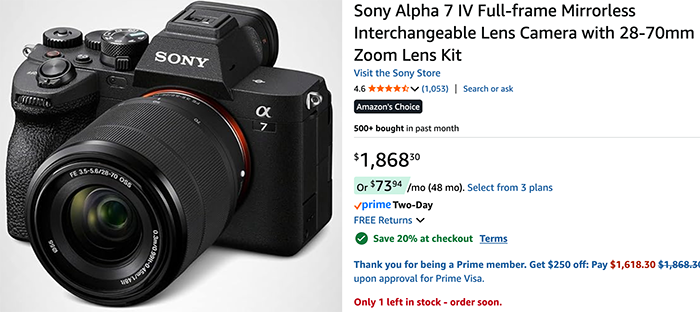 - $1495 for the Sony A7IV with kit lens. NEW!!!