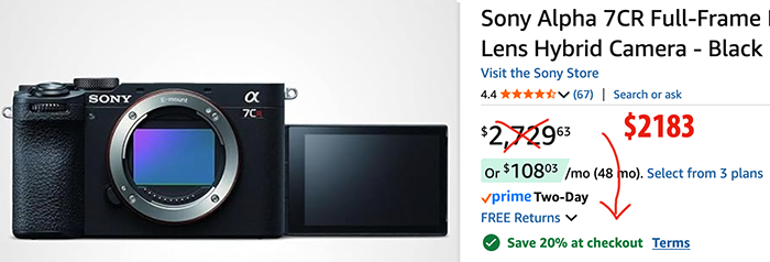 - $2183 for the Sony A7cR