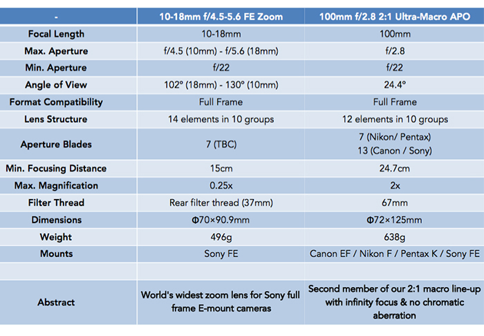 Venus Optics announces the new 10-18mm and 100mm FE lenses